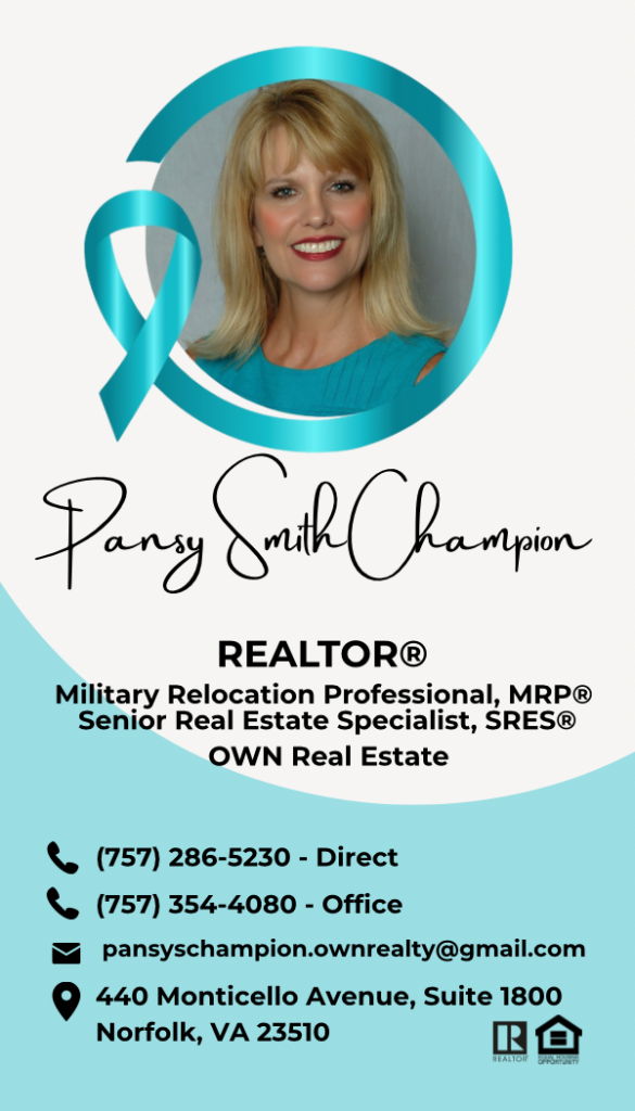 Pansy Smith Champion – Hampton Roads Realtor, we are driven by a passion for connecting people with their dream homes along with the drive and empathy of a 4-time cancer survivor. Our commitment to excellence and deep-rooted knowledge of all south-side Hampton Roads cities ensures that every client receives personalized and dependable service.